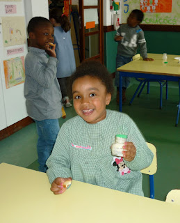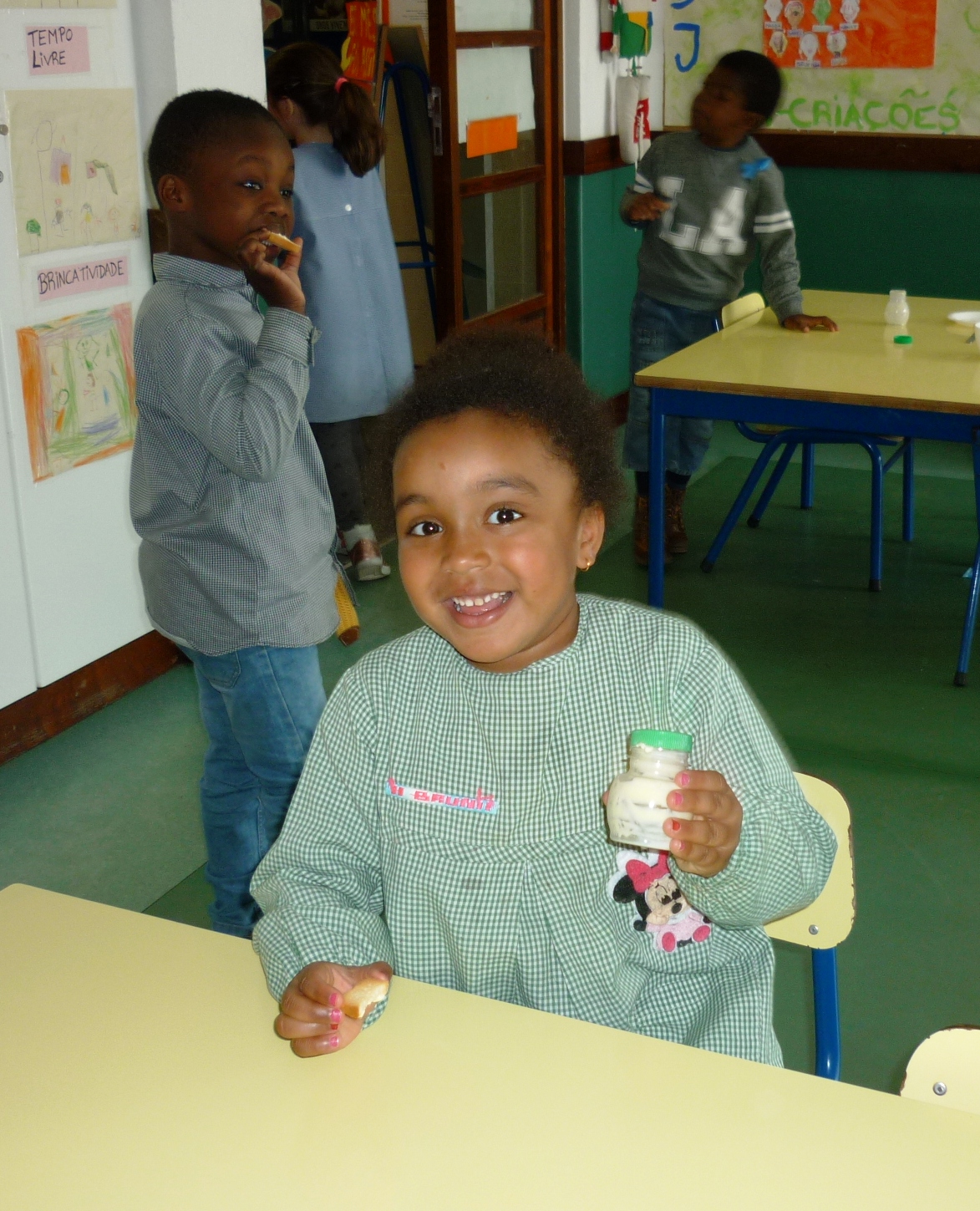 Depois de ouvirem a história "Na tacinha das natas", contada pela professora bibliotecária, "trabalharam arduamente" para fazer manteiga, a partir de natas frescas. E, no fim da sessão, provaram a manteiga, como eles contaram, depois. Ficam aqui as suas palavras, imagens e algumas fotos.
