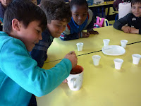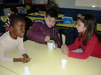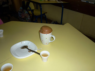 Depois de ouvirem atentamente o conto "Sua Senhoria a fada", apresentado pela professora bibliotecária, começaram as experiências...e que festa foi! Primeiro, um ambientador que deixou a sala com um belo cheirinho a alfazema. Depois, o candeeiro de lava, que encantou todos. E, por fim, o chá e um delicioso bolo de chocolate, feito numa caneca, no micro-ondas. Foi o culminar de uma tarde deliciosa!!