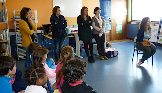 No dia 12 de abril, a autora do livro " A Lua Amarela Azul", Joana Melo da Silva acompanhada de alguns elementos da APDJ, estiveram na Biblioteca desta escola a falar-nos do seu livro. Primeiro, foi lida a história e, depois,foi feita uma sessão de esclarecimento sobre o tema do livro - os maus tratos e a violência de que as crianças são alvo.